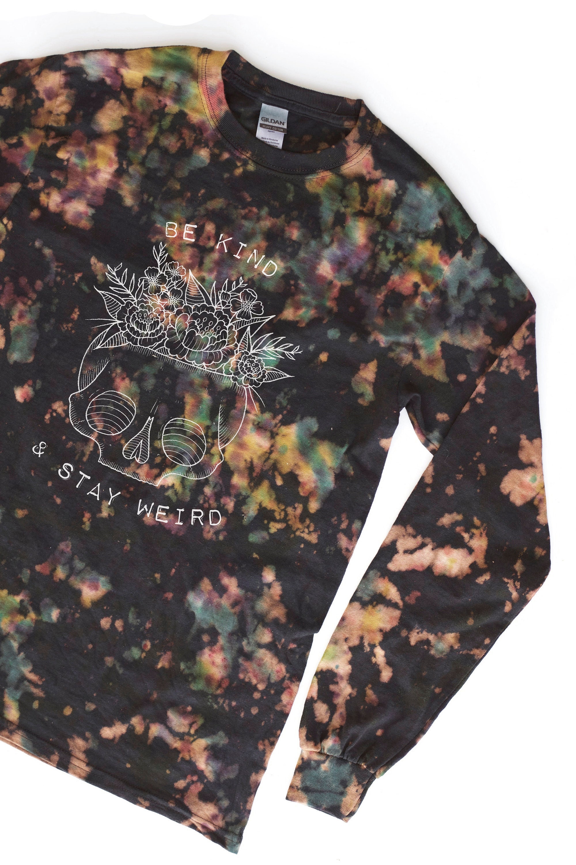 Reverse Tie Dye with muted colors UNISEX long sleeve T-shirt - Be Kind Stay Weird - black and rainbow 3000 Low in stock Unisex Sizing Add to cart Hooray. This item ships free to the US. Diy Tissue Paper Tie Dyeing Honestly Wtf Keychain Pines.
